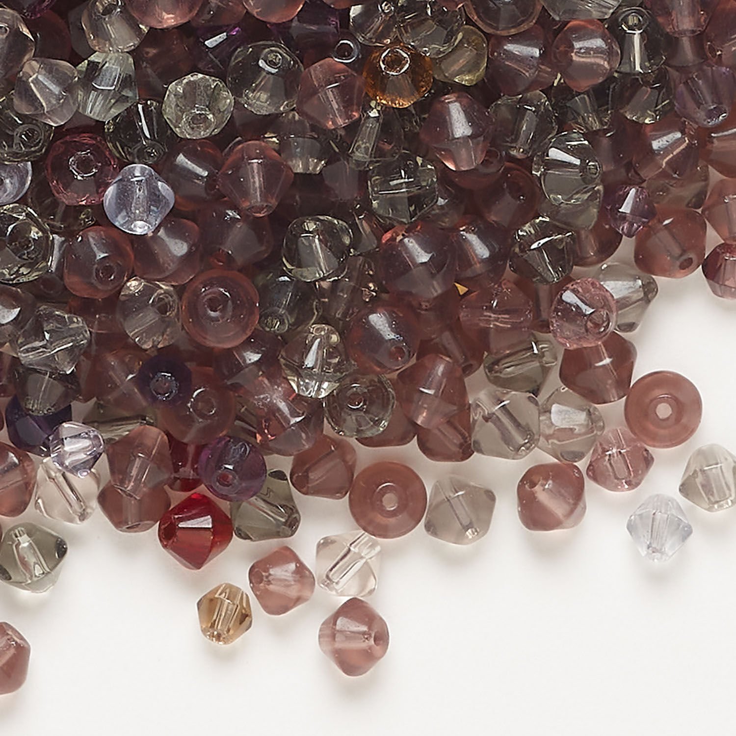 Bead mix 1pkg1, glass, translucent mixed colors, 4mm bicone, 4 ounces