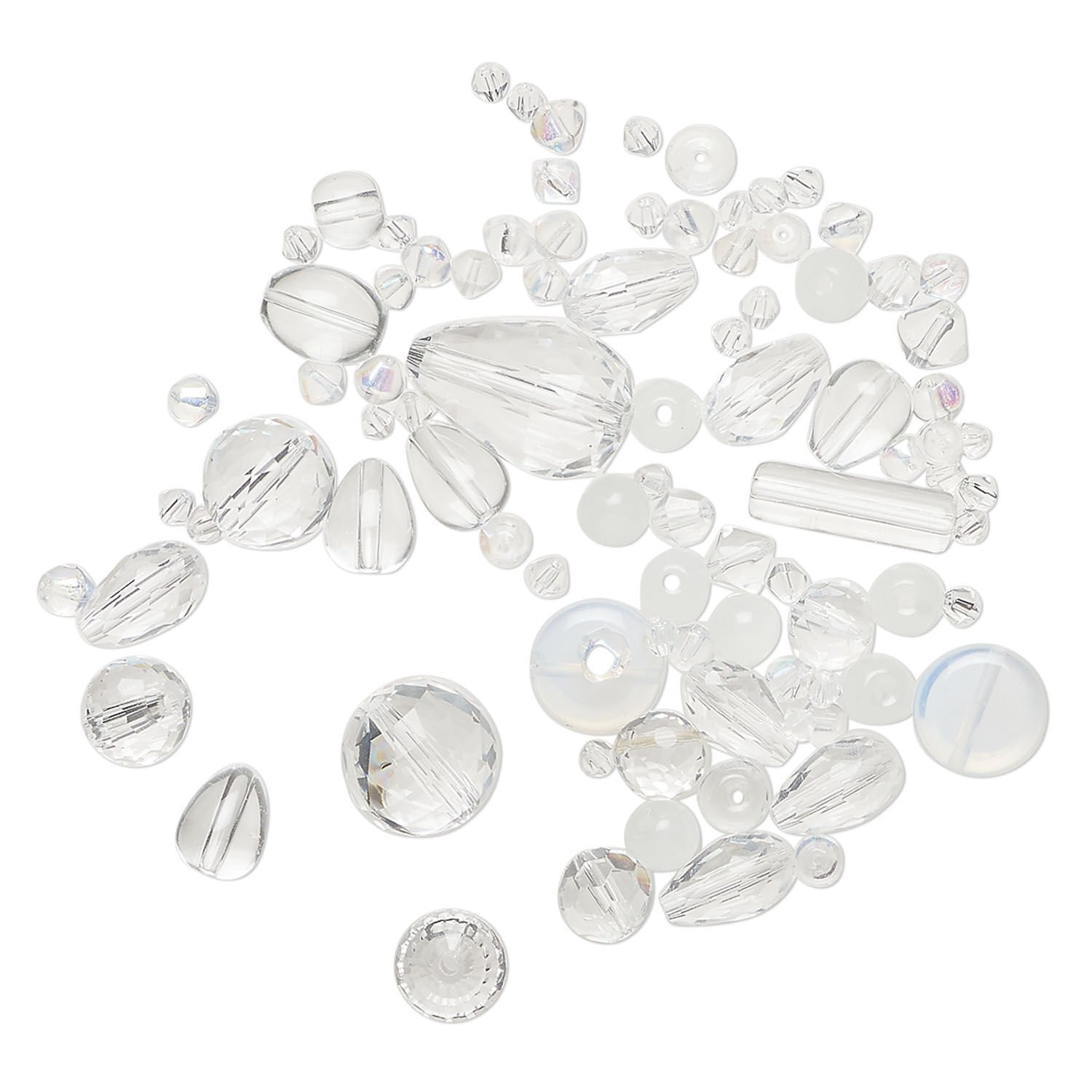 Bead mix 1pkg1 glass, translucent and transparent sea "opal", 3mm-25x18mm mixed shapes, 1 ounce.