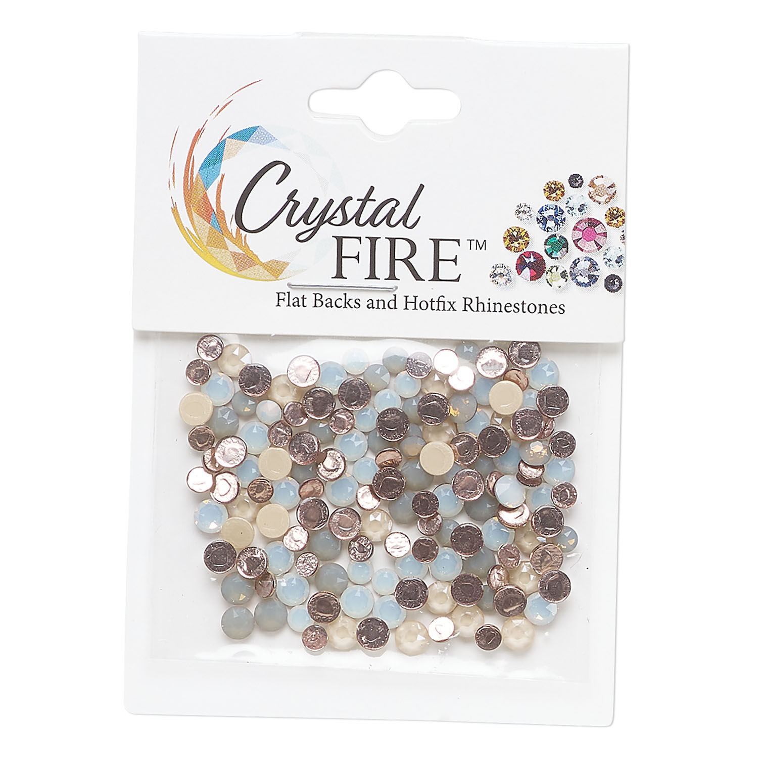 Flat back mix 1pkg144 light grey opal / opal / ivory cream opal, Crystal FIRE®, 3-4.80mm hotfix framed round SS12 / SS16 / SS20