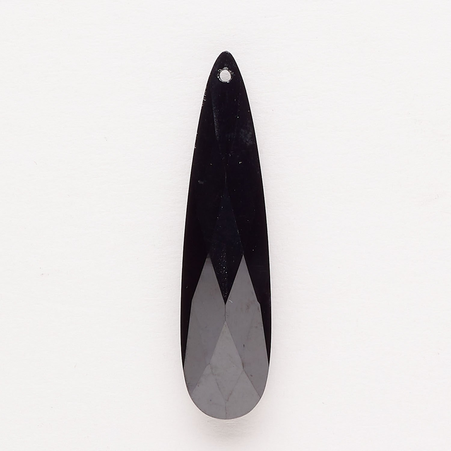 Focal 1pkg1, cubic zirconia, translucent black, 36x9mm top-drilled double-sided hand-faceted teardrop.