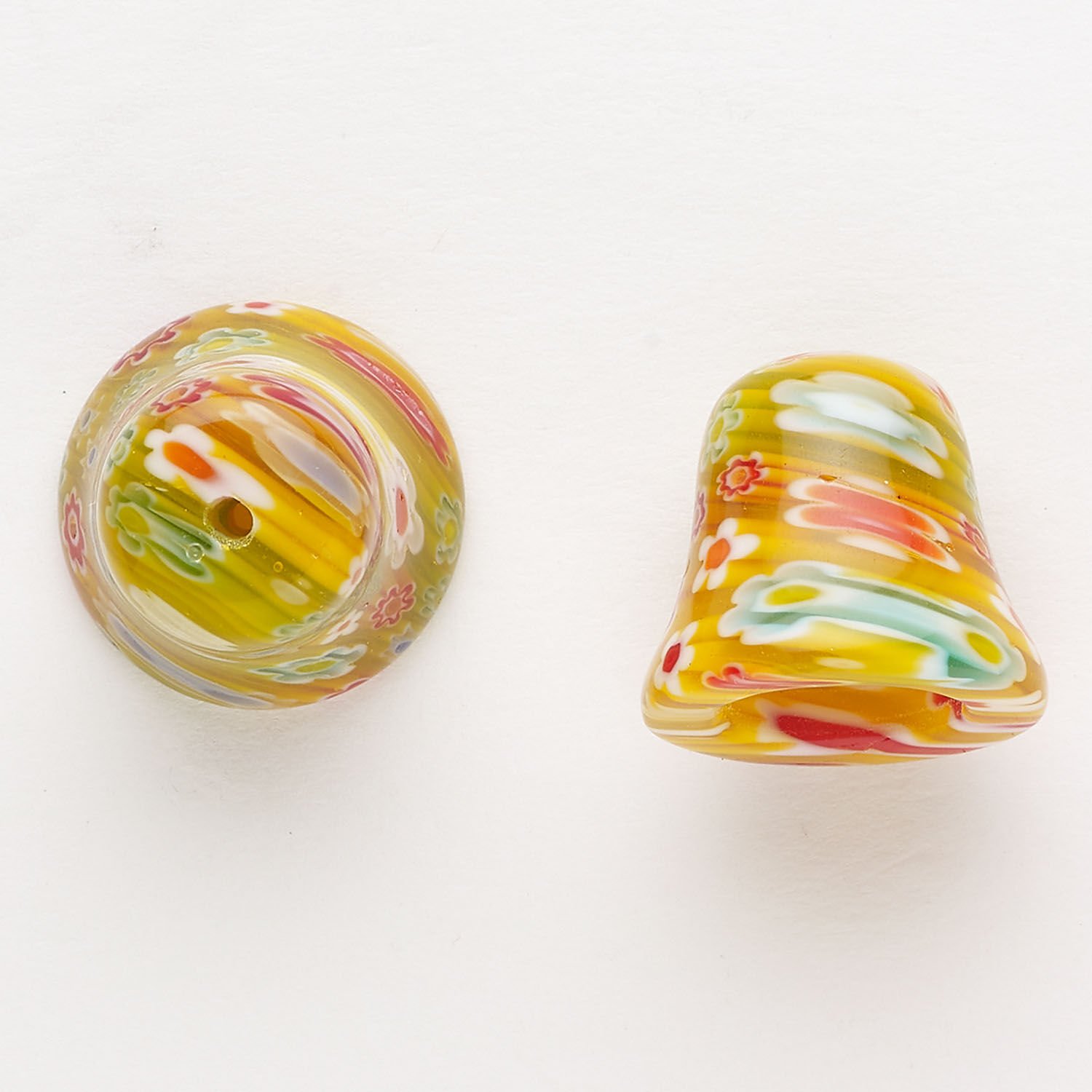 Cord end 1pkg2 millefiori glass, translucent multicolored, 17-18mm bell.