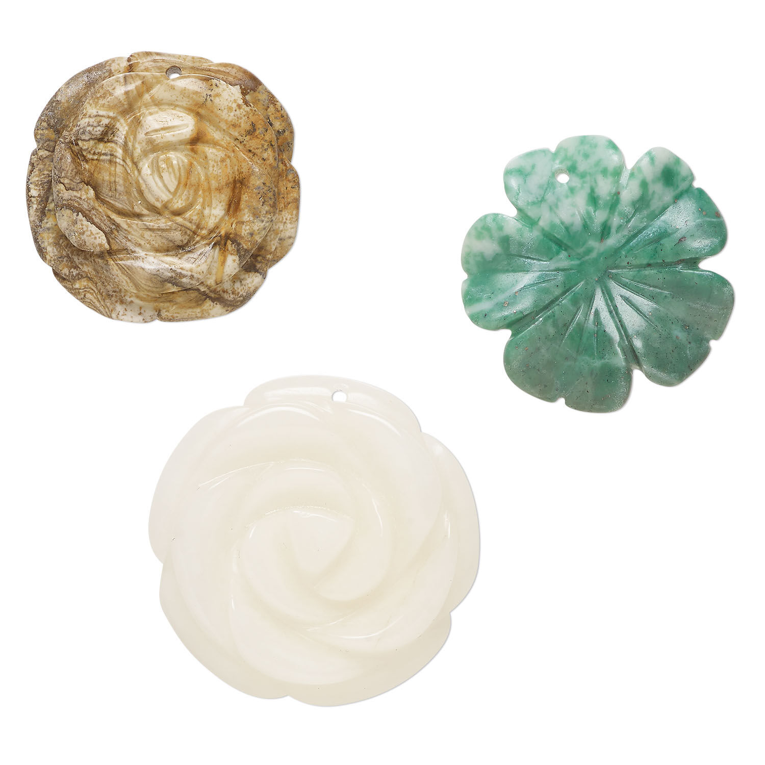 Multi-gemstone 1pkg3, top-drilled carved flower drop mix mixed colors 34x29mm-41x41mm