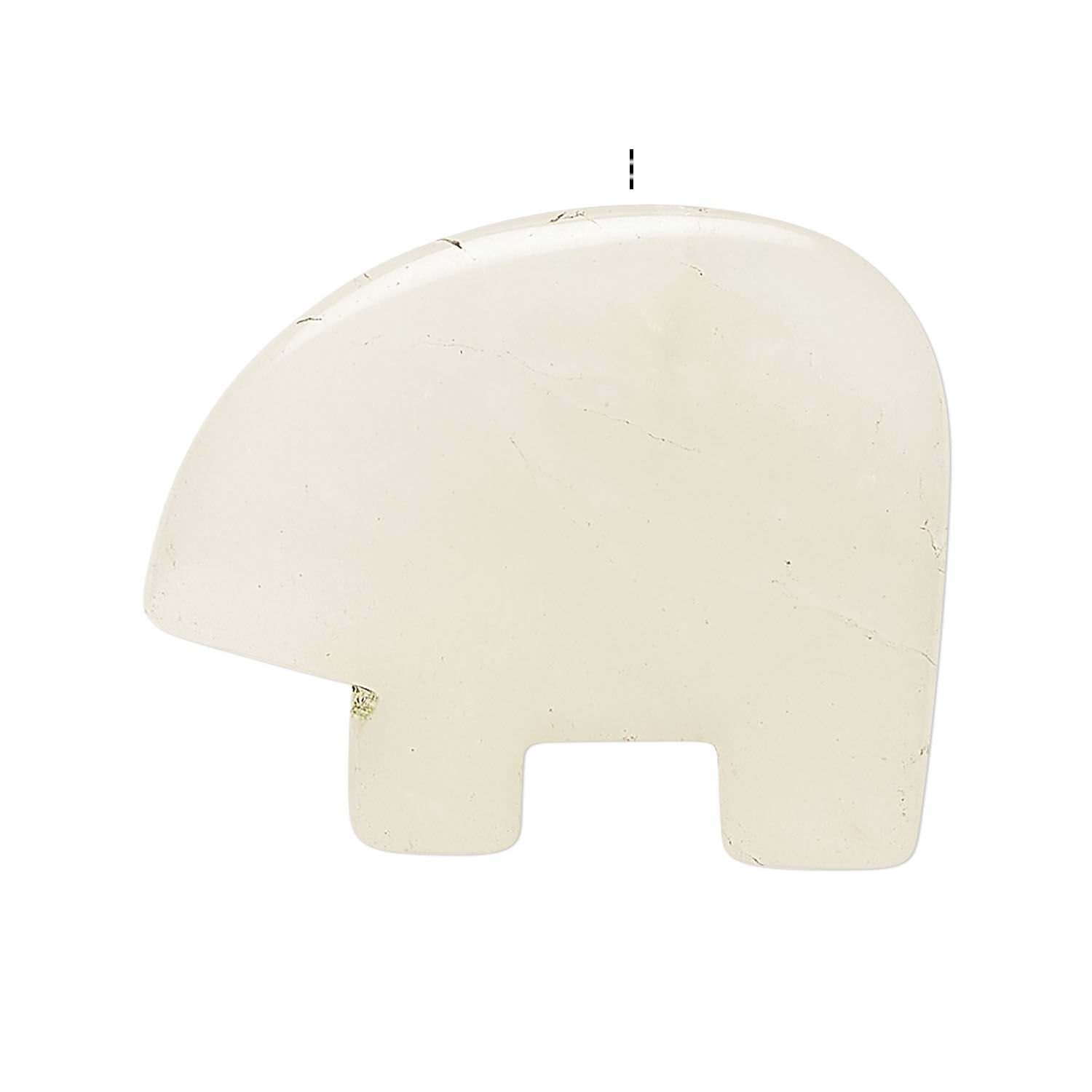 Snow quartz 1pkg1, top-drilled and half-drilled Zuni-style bear focal natural, 34x21mm-38x29mm