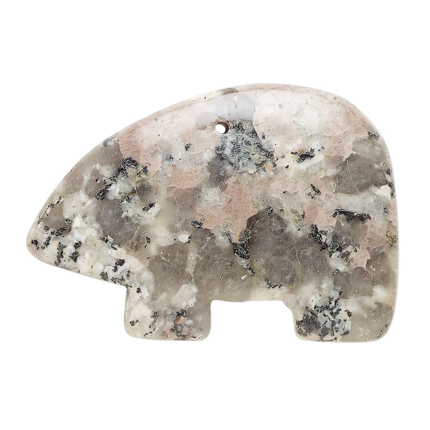 Pink sesame jasper 1pkg1, half-drilled Zuni-style bear focal natural, 39x26mm-43x31mm