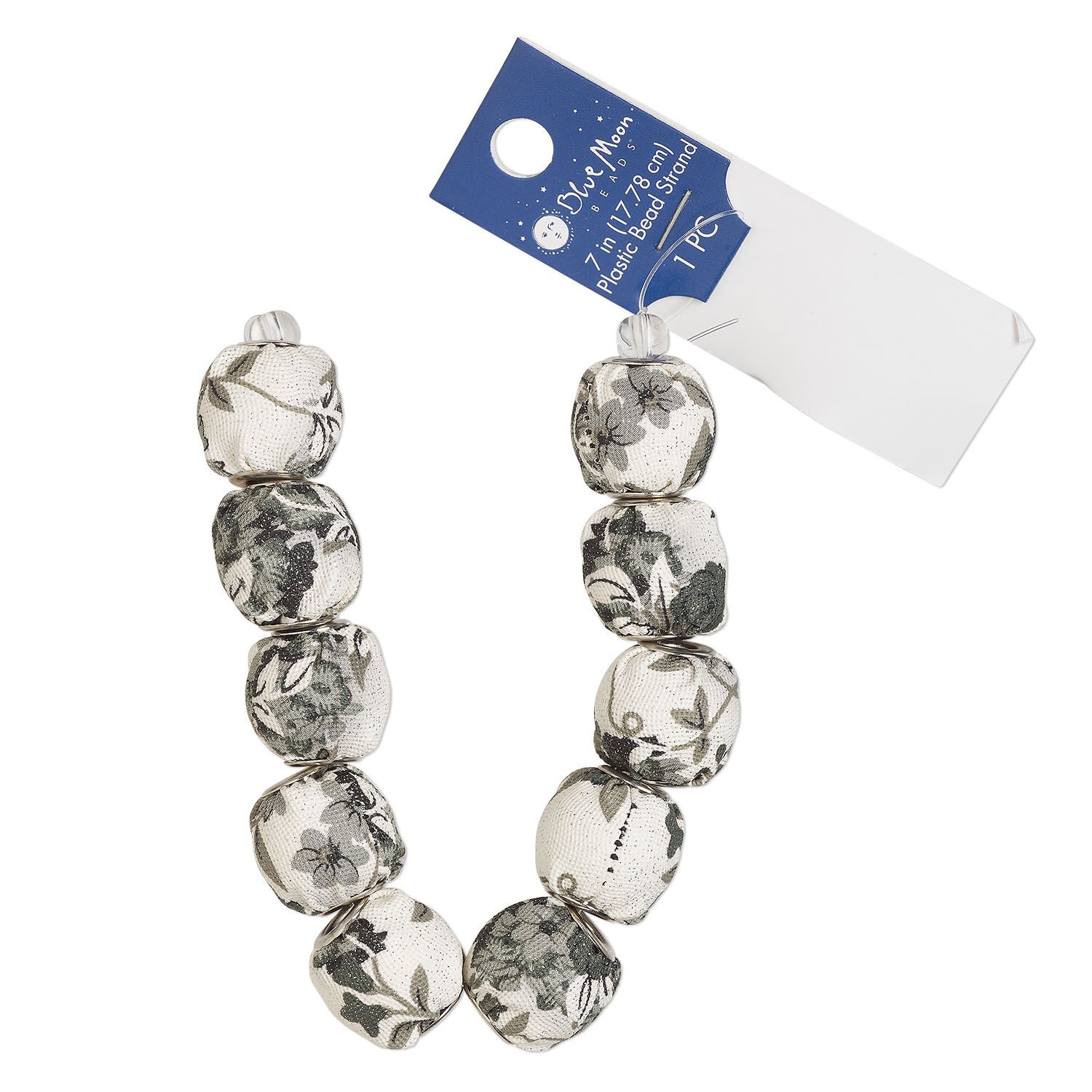 Grommet hole measures 5mm. Package contains approximately 10 beads. Colors include black, off-white, grey and more.