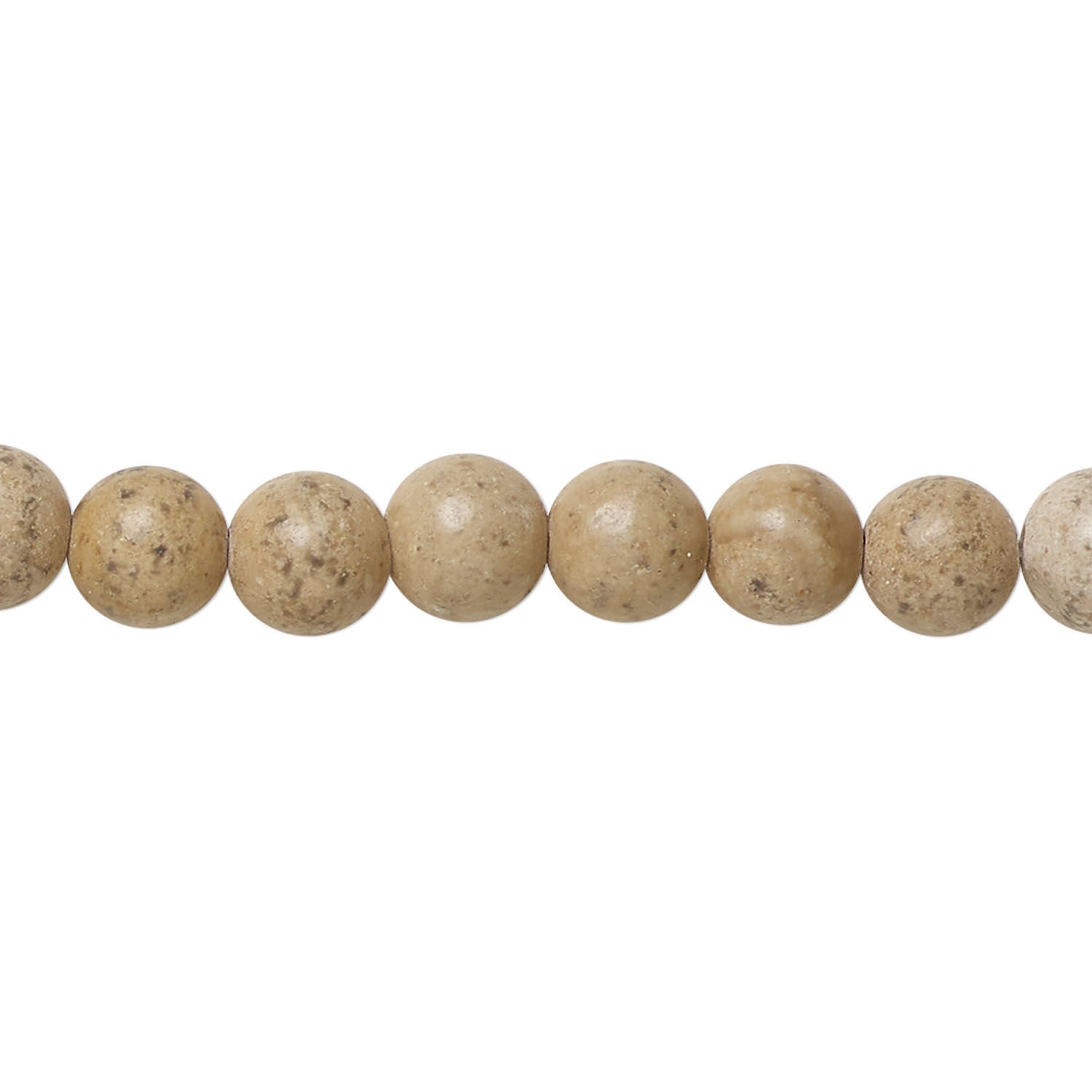 Grain stone is a type of marble with subtle tan shades and black grain-like inclusions. Package contains approximately 60 beads.