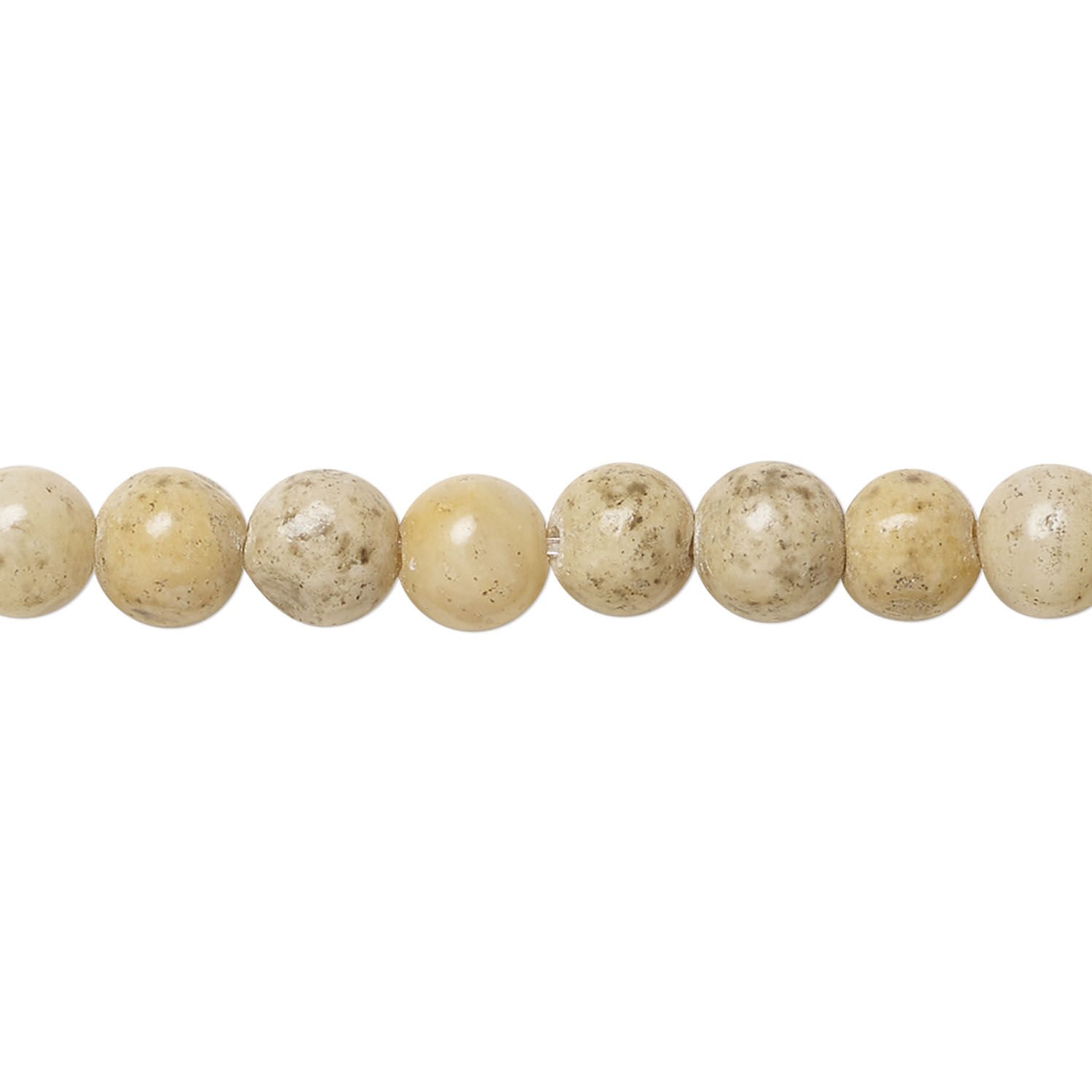 Grain stone is a type of marble with subtle tan shades and black grain-like inclusions. Package contains approximately 60 beads.