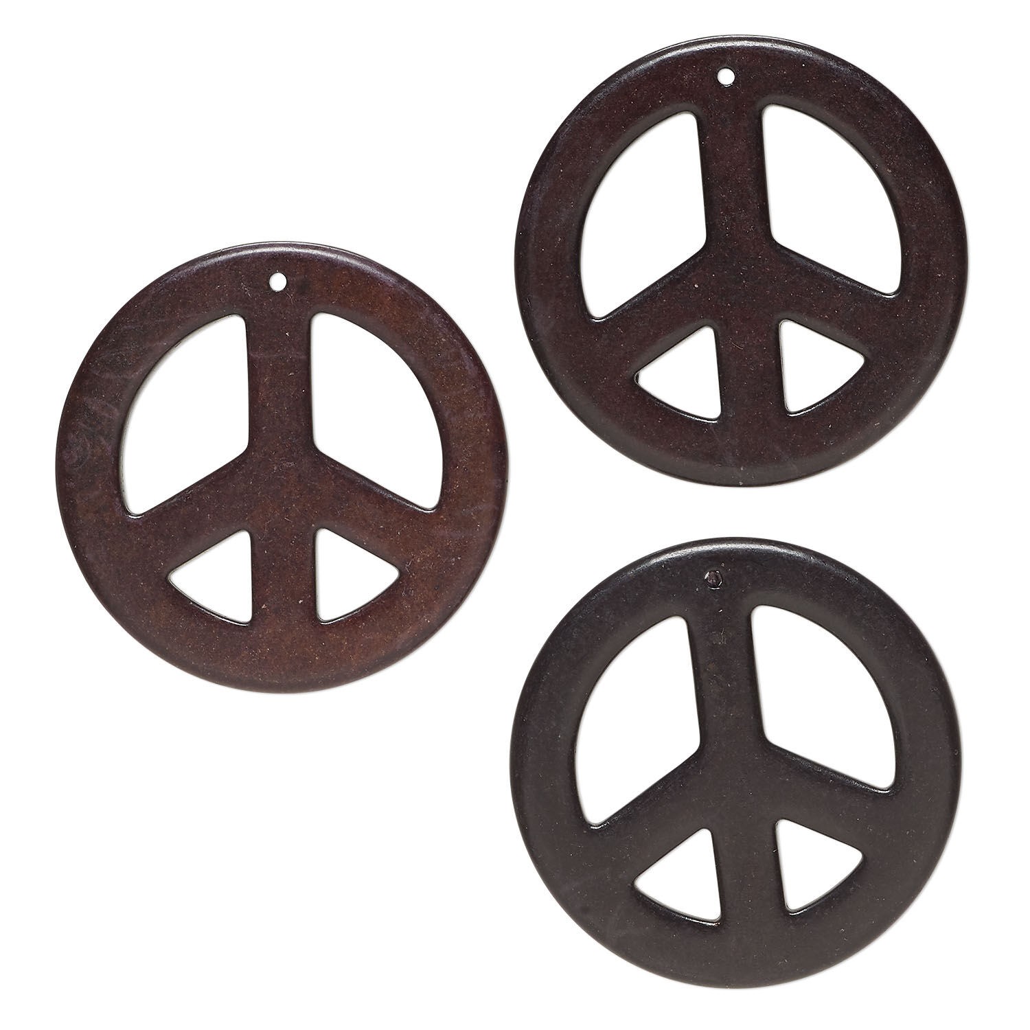 "Turquoise" 1pkg3, top-drilled peace sign focal black 45mm