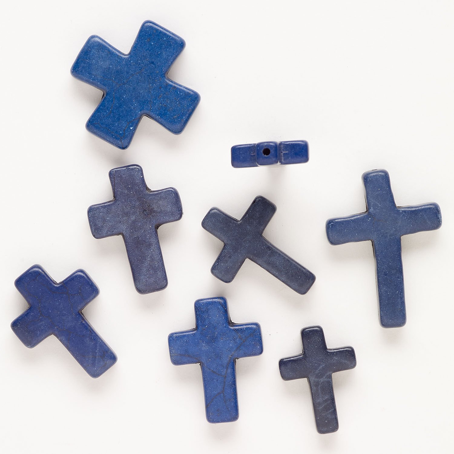 Bead, "howlite" (resin) (imitation) 1pkg8, blue and dark blue, 25x18mm-37x27mm cross.