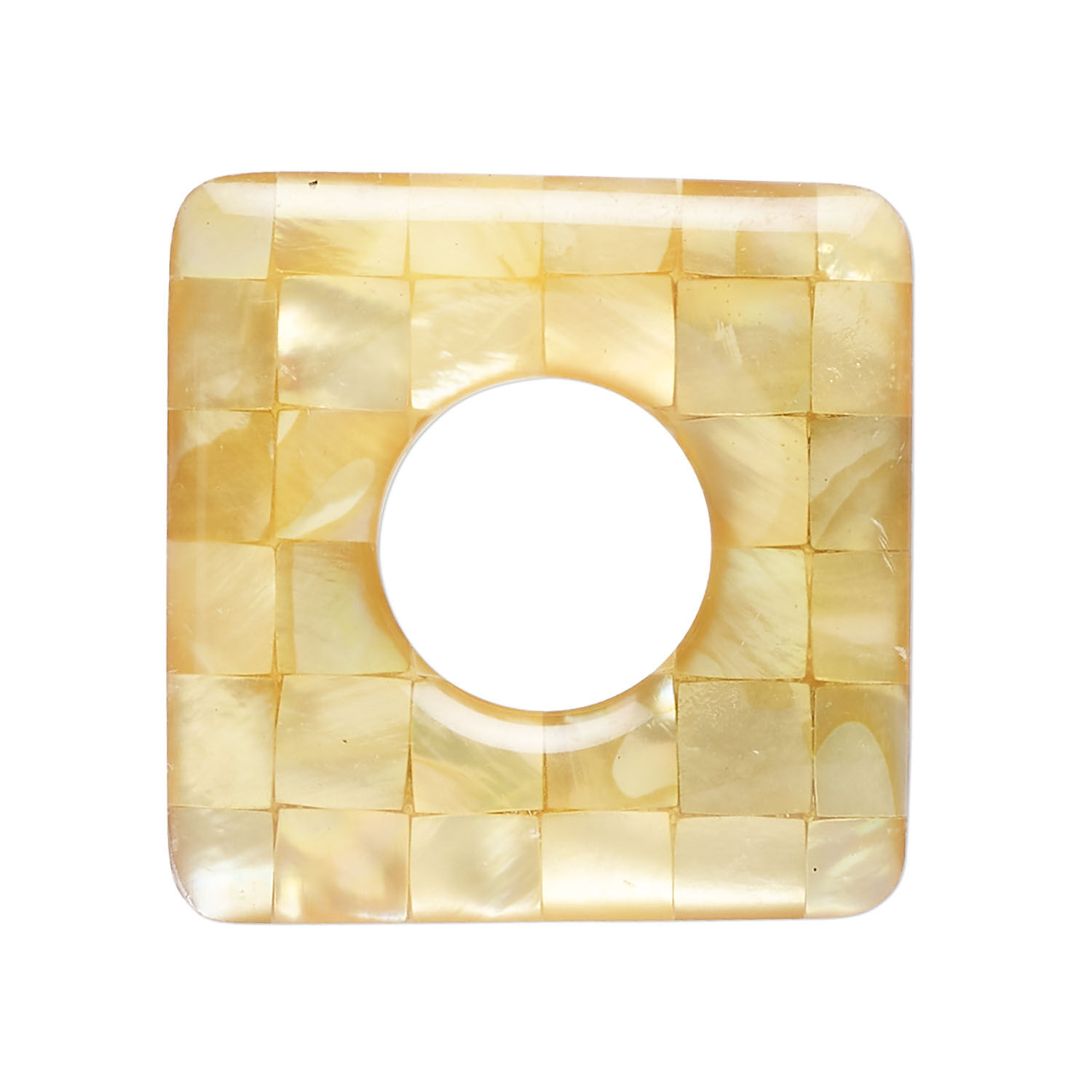 Focal, gold lip shell / mother-of-pearl shell / resin (assembled) 1pkg1, bright yellow, 29-30mm undrilled 1sided square donut with checkerboard pattern.