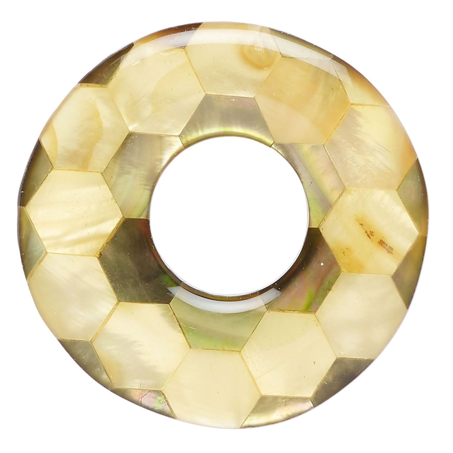 Focal, black lip shell / gold lip shell / mother-of-pearl shell / resin (assembled) 1pkg1, 40mm undrilled 1sided donut.