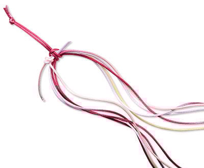 Cut one 18-foot length of Satinique™ 2mm cord and three 1-foot lengths of metallic gold elastic cord.