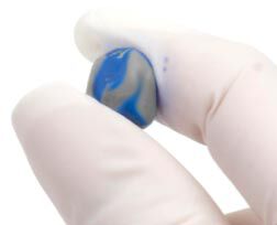 Pinch off a small amount of your prepared epoxy. Shape it into a ball. Press the ball onto a texture plate or mat. Let it set in place until the epoxy has set up.